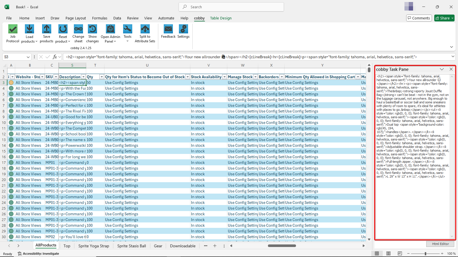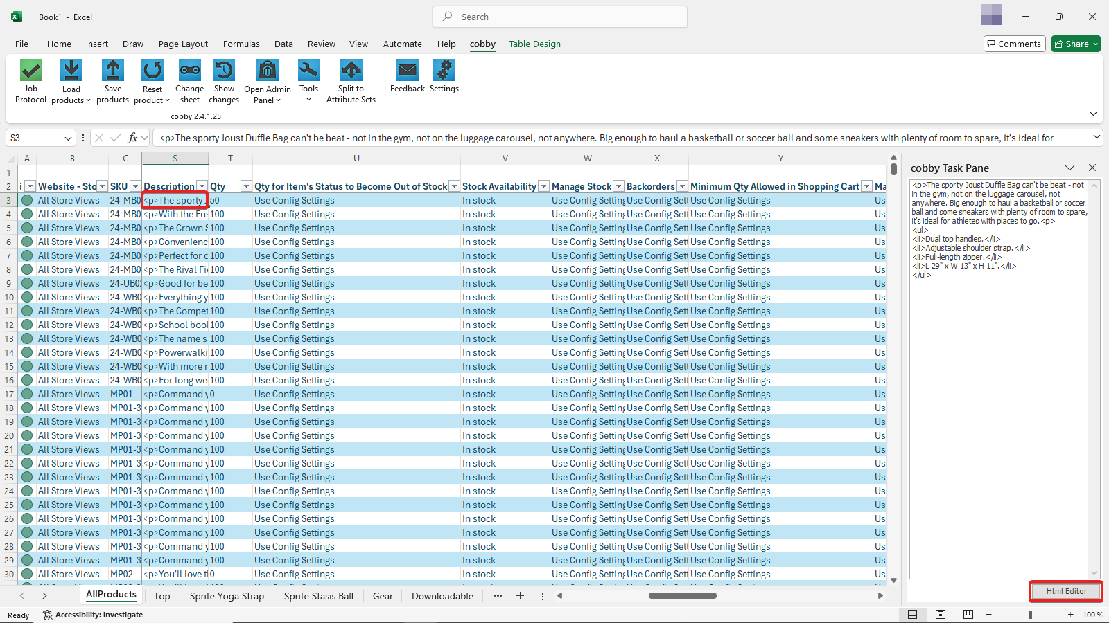 cobby imports the product texts in HTML format, since they are processed in this format by the online stores. The representation as HTML code may seem confusing and complicated to users who may not feel comfortable working with HTML. They may also not know exactly what needs to be taken into account when editing so that the code continues to function without errors.