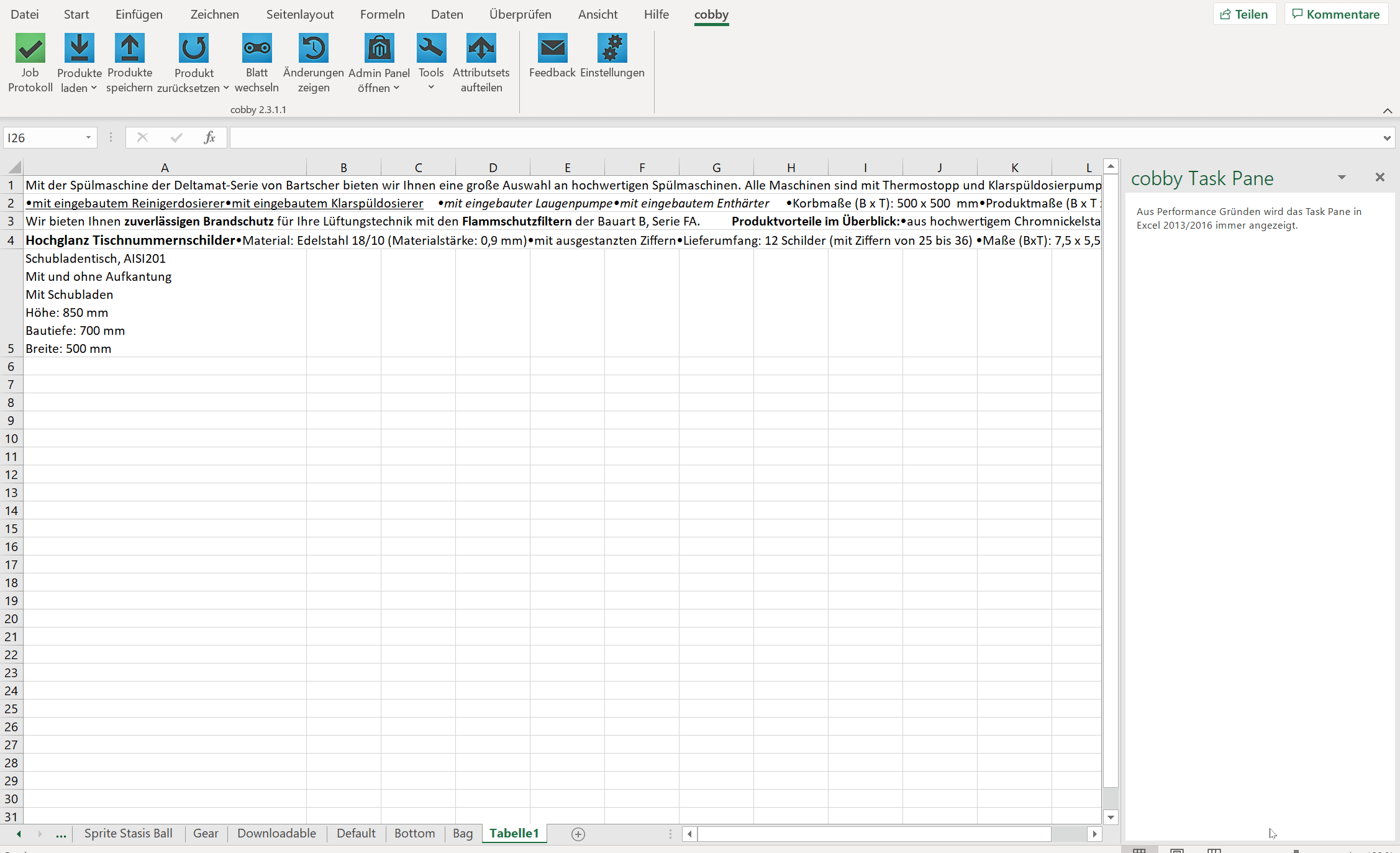 The editor makes it possible to maintain product texts much more quickly. Texts can be converted directly into the appropriate format for the store, can be easily adapted, and can finally be uploaded immediately. Everything in one place!